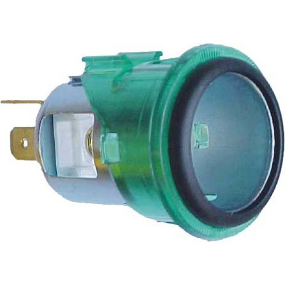 Tomada padrão DIN com anel difusor verde, sem lâmpada, especialmente projetada para alimentação de celulares e outros aparelhos.12 / 24V