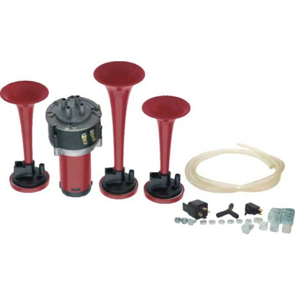 BUZINA 03 CORNETAS ELETROPNEUMATICAS VERMELHA 12V