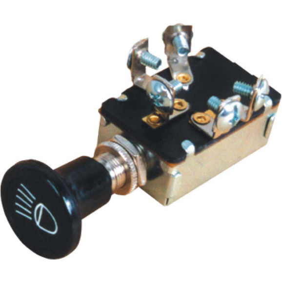 Posições: Neutro, painel e lanternas, lanternas traseiras e faróis. Quatro terminais com parafusos.