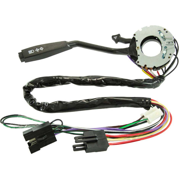 Com retorno automático, comutação de farol alto e baixo, lampejo, buzina e pisca alerta.