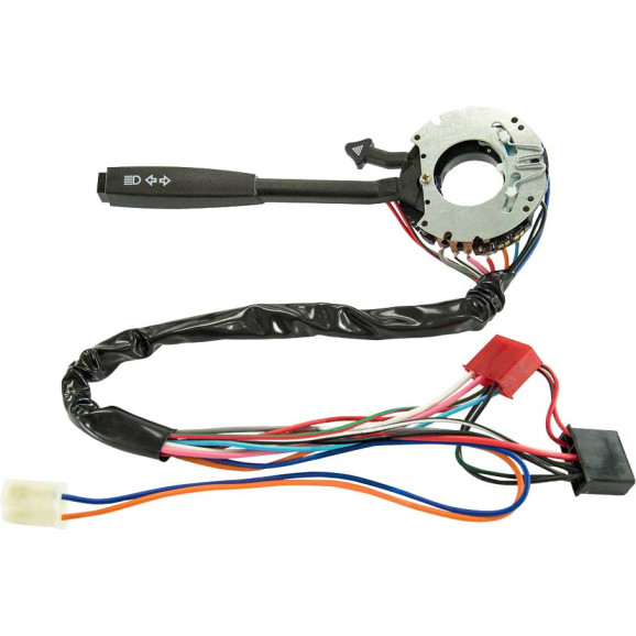 Com retorno automático, comutação de farol alto e baixo, lampejo, buzina e pisca alerta.