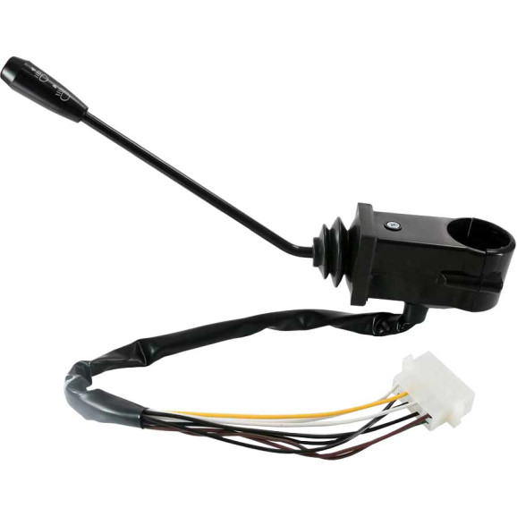 Com farol alto e baixo e buzina. Alavanca longa.