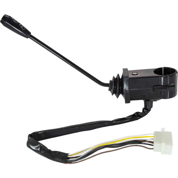 Com farol alto e baixo e buzina. Alavanca curta.