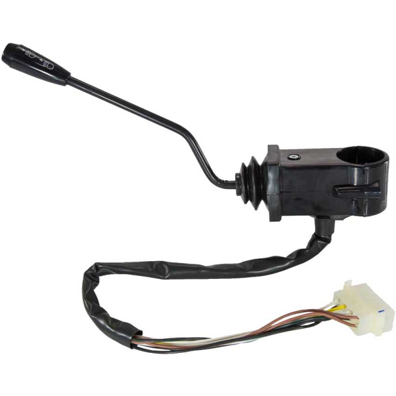 Com farol alto e baixo e buzina. Alavanca curva em “s”.