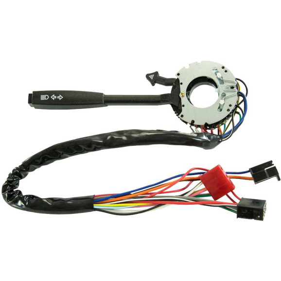 Com retorno automático, comutação de farol alto e baixo, lampejo, buzina e pisca alerta.
