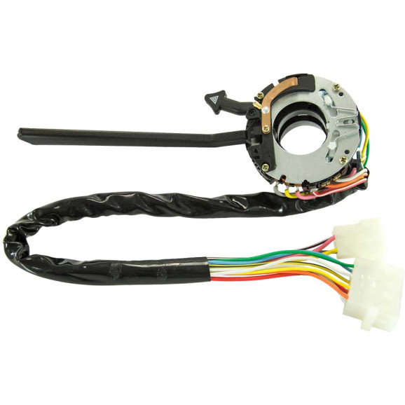 Com retorno automático, comutação de farol alto e baixo, lampejo de farol e pisca alerta.
