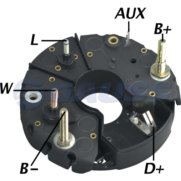 105A, Diodos: 8 x 35A, 3x35A Trio diodo, Terminal B+ M8/M6, Terminal B- M6Terminal D+ M4, Terminal W M5