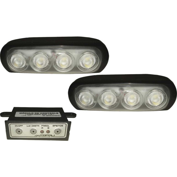 FAROL NEW SLIN 4 LEDS SMD 4W 3EM1 BIVOLT 12/24V SUPER BRANCO CORPO PRETO RETANGULAR