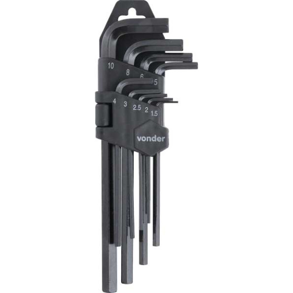 INDICADO PARA APERTAR E SOLTAR PARAFUSOS COM SEXTAVADO INTERNO. COMPRIMENTO DAS CHAVES: 1,5 MM - 45 MM, 2,0 MM ? 50 MM, 2,5 MM ? 55 MM, 3 MM ? 60 MM, 4 MM ? 65 MM, 5,0 MM ? 72 MM, 6,0 MM ? 90 MM, 8,0 MM ? 100,0 MM, 10 MM -112,0 MM.