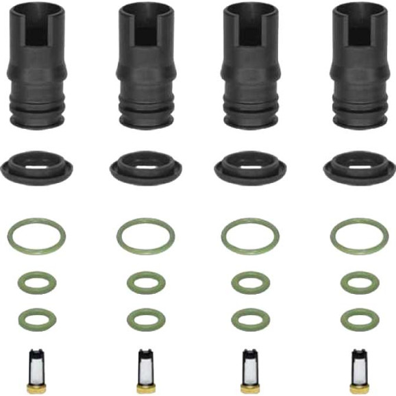 O'RINGS: 12 | FILTROS: 04 | Ø INTERNO (MM): 7,52 | Ø SECÇÃO (MM): 3,53 | Ø INTERNO (MM): 13,94 | Ø SECÇÃO (MM): 2,62 | ANÉIS: 04 | PROLONGADOR CURTO: 04