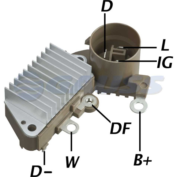 14V, Campo Positivo; 57.5 mm Mounting; Terminais: D-IG-L, Terminal 'L' com drive choke